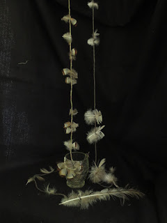 My ladder is for escaping your troubles, my string was made on a lucet with fine embroidery thread and my feathers are from owls and pheasants (donated not stolen!).